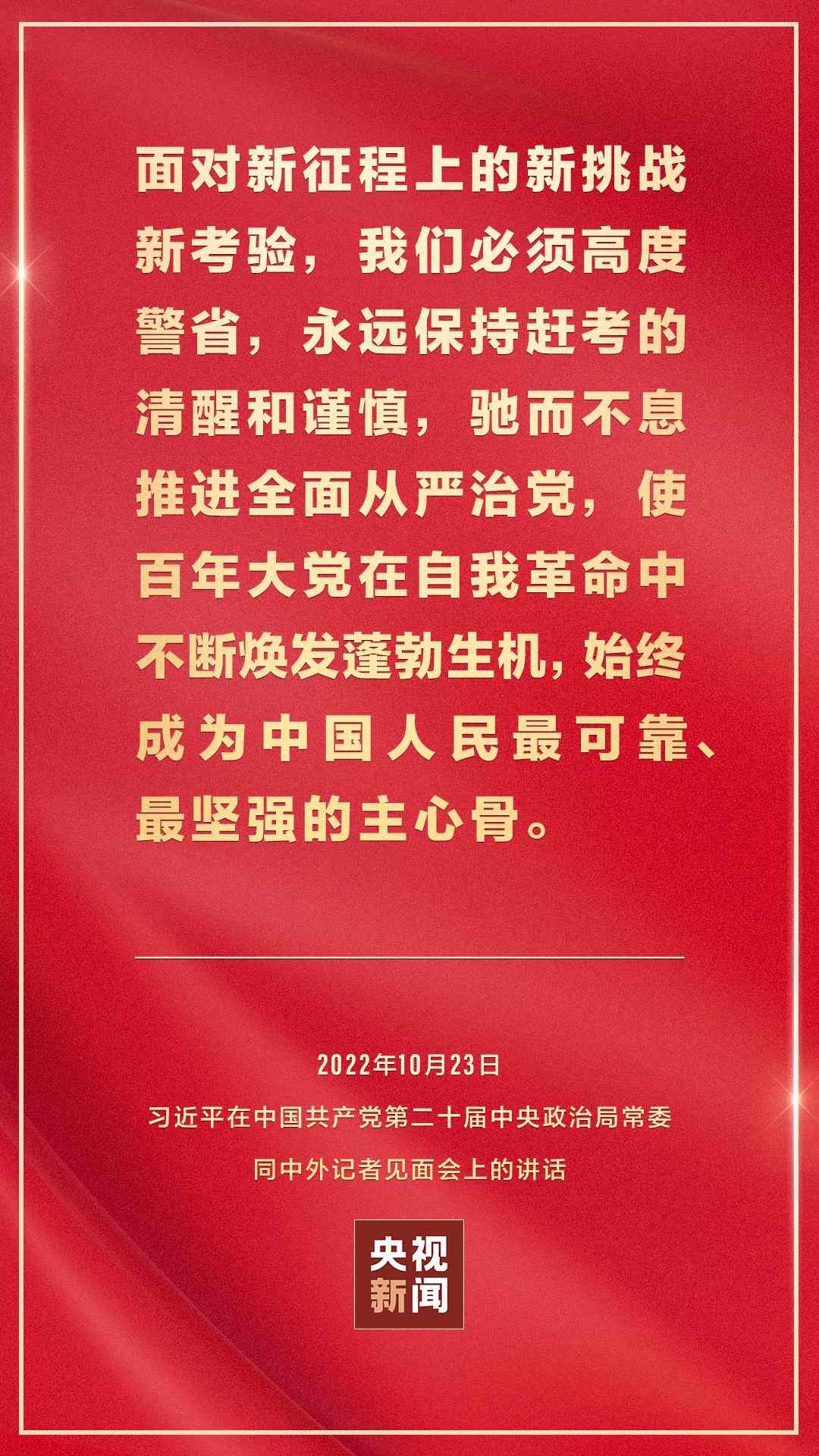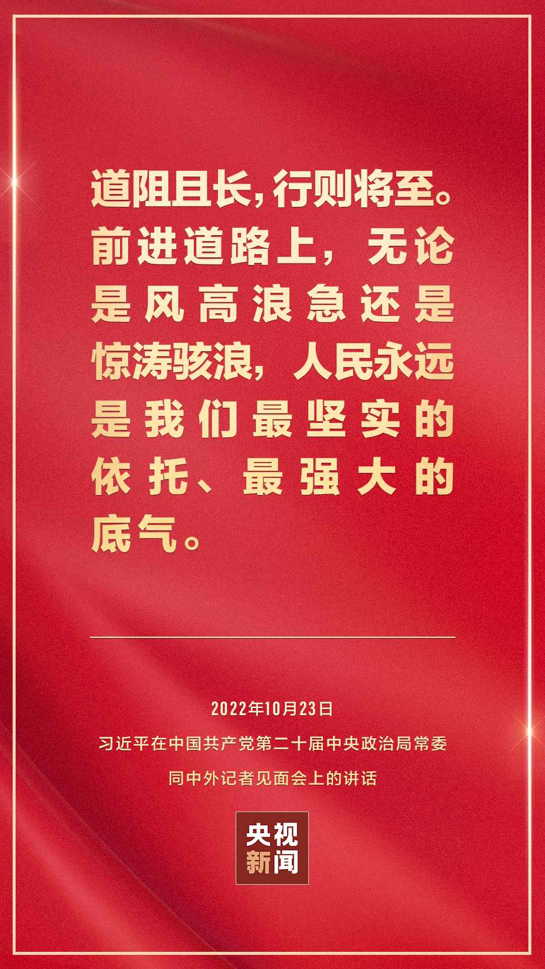 在中國(guó)共產(chǎn)黨第二十屆中央委員會(huì)第一次全體會(huì)議上當(dāng)選的中共中央總書記習(xí)近平和中共中央政治局常委李強(qiáng)、趙樂際、王滬寧、蔡奇、丁薛祥、李希,23日中午在人民大會(huì)堂同采訪中共二十大的中外記者見面。習(xí)近平發(fā)表重要講話。