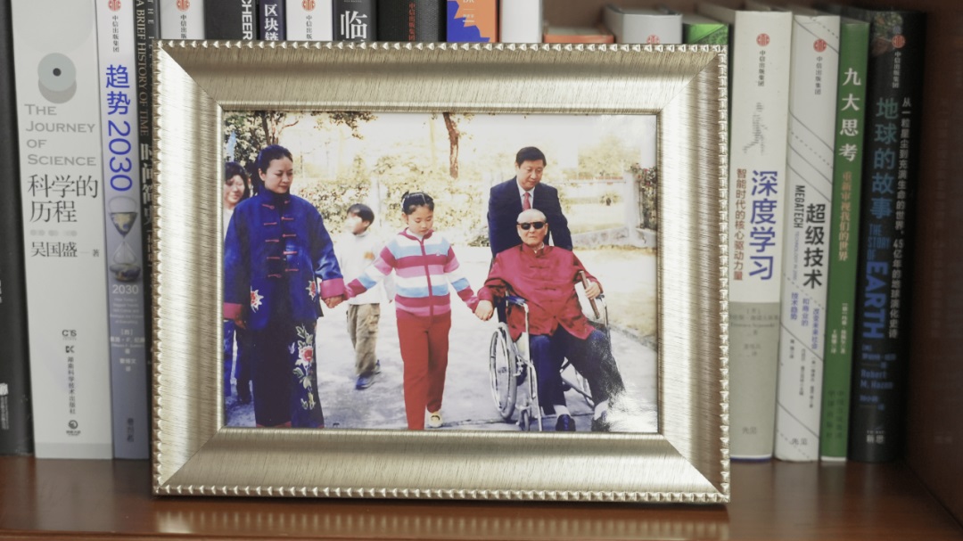 還有一張?zhí)貏e的照片,從習(xí)近平主席發(fā)表二〇一九年新年賀詞時(shí)起,就一直擺放在書架上。