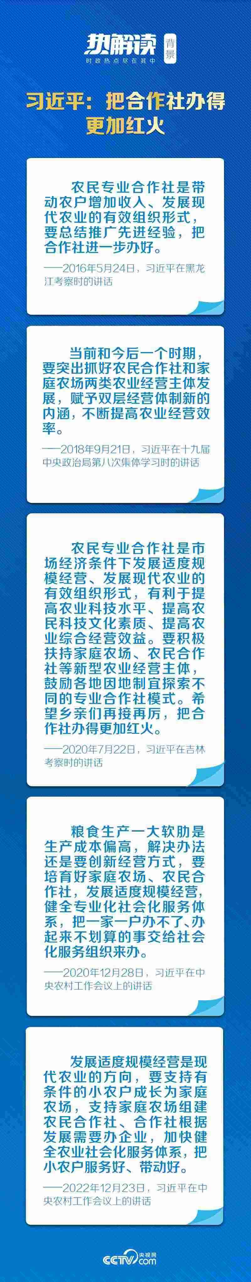 合作社是市場經(jīng)濟(jì)條件下發(fā)展適度規(guī)模經(jīng)營和現(xiàn)代農(nóng)業(yè)的有效組織形式。黨的十八大以來,總書記不止一次走進(jìn)合作社,關(guān)切農(nóng)業(yè)、農(nóng)村發(fā)展,思考中國特色的農(nóng)業(yè)現(xiàn)代化之路。