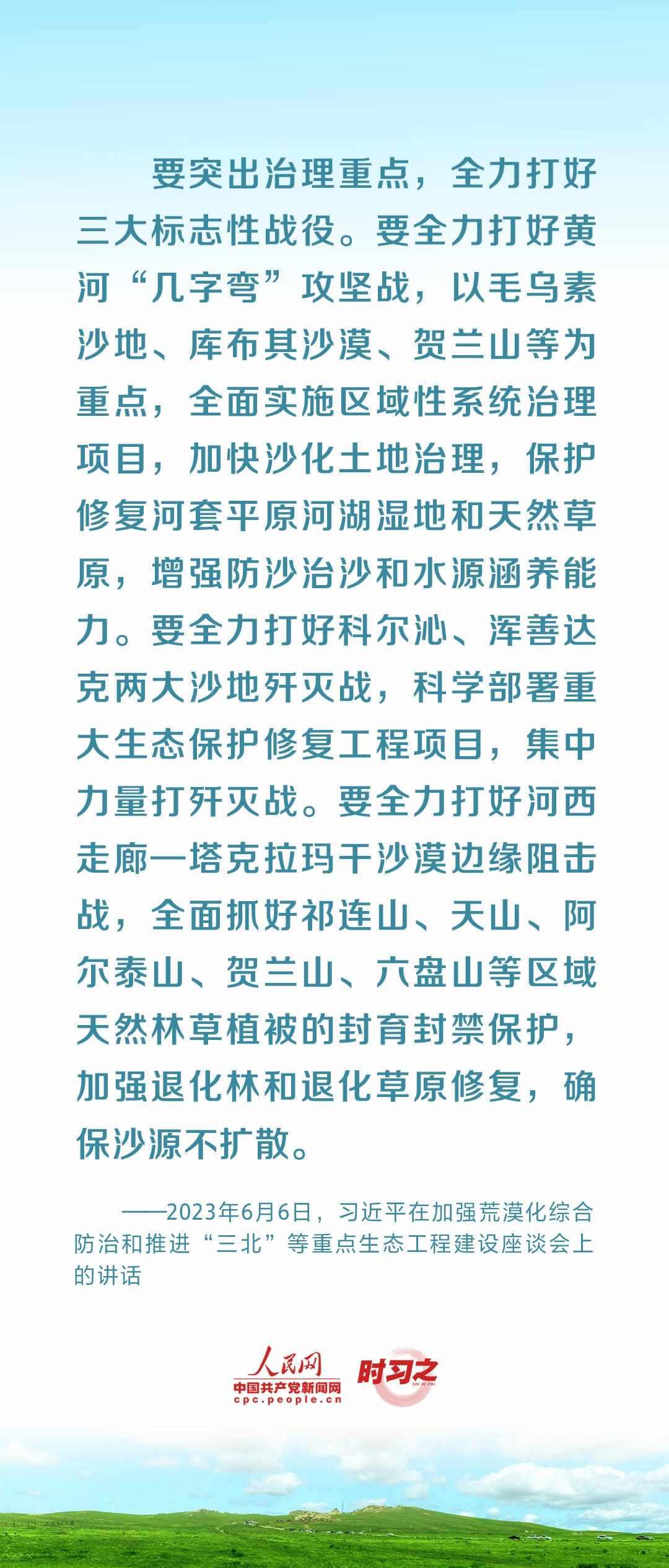 2023年6月5日至6日,中共中央總書記、國家主席、中央軍委主席習(xí)近平在內(nèi)蒙古自治區(qū)巴彥淖爾市考察,主持召開加強(qiáng)荒漠化綜合防治和推進(jìn)“三北”等重點(diǎn)生態(tài)工程建設(shè)座談會并發(fā)表重要講話。座談會上,習(xí)近平對走好中國特色防沙治沙道路提出工作要求。