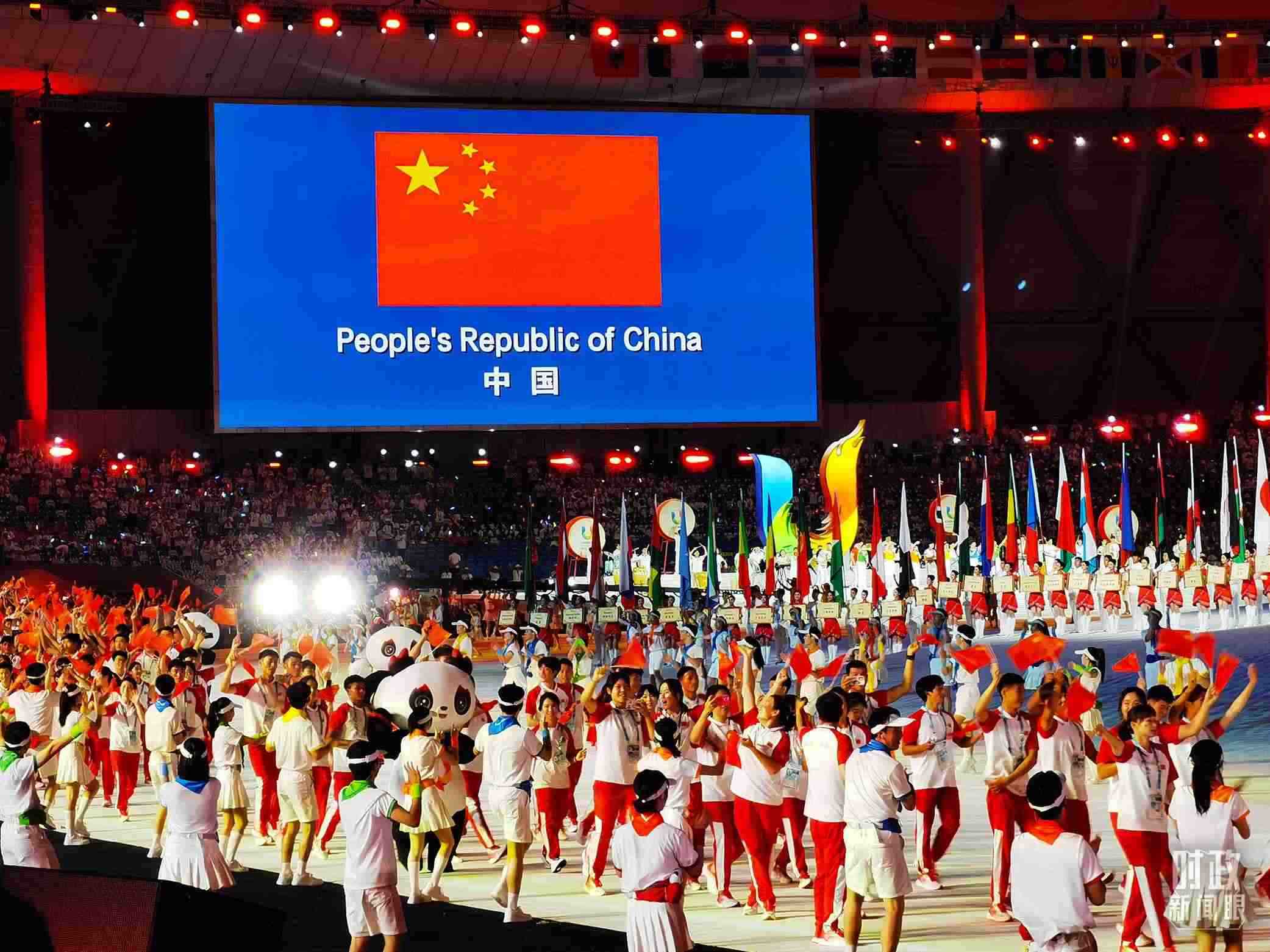 △中國大學(xué)生體育代表團在開幕式上入場。(總臺央視記者張淳拍攝)