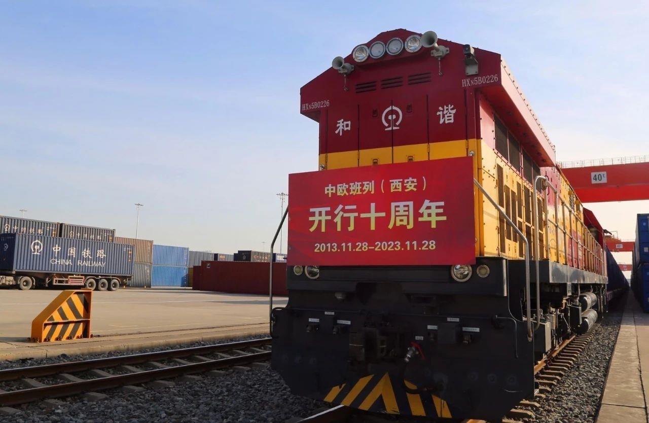 △2023年11月28日,X8155次中歐班列從西安國際港站緩緩駛出,開往德國漢堡。