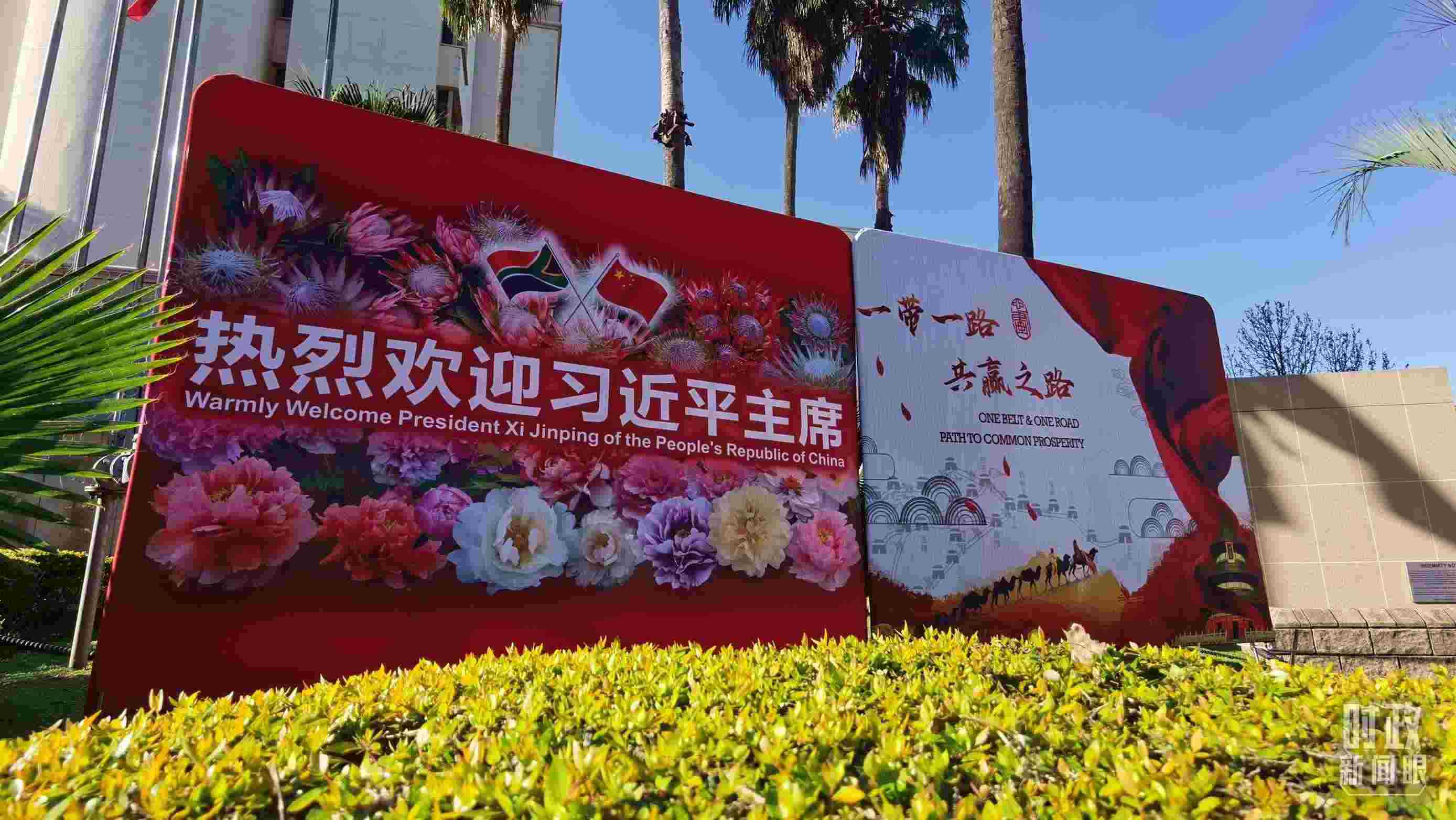 △ 2023年8月,習近平主席抵達南非約翰內(nèi)斯堡,出席金磚國家領(lǐng)導(dǎo)人第十五次會晤并對南非進行國事訪問。圖為約翰內(nèi)斯堡街道邊“熱烈歡迎習近平主席”的標語牌。(總臺央視記者曹亞星拍攝)