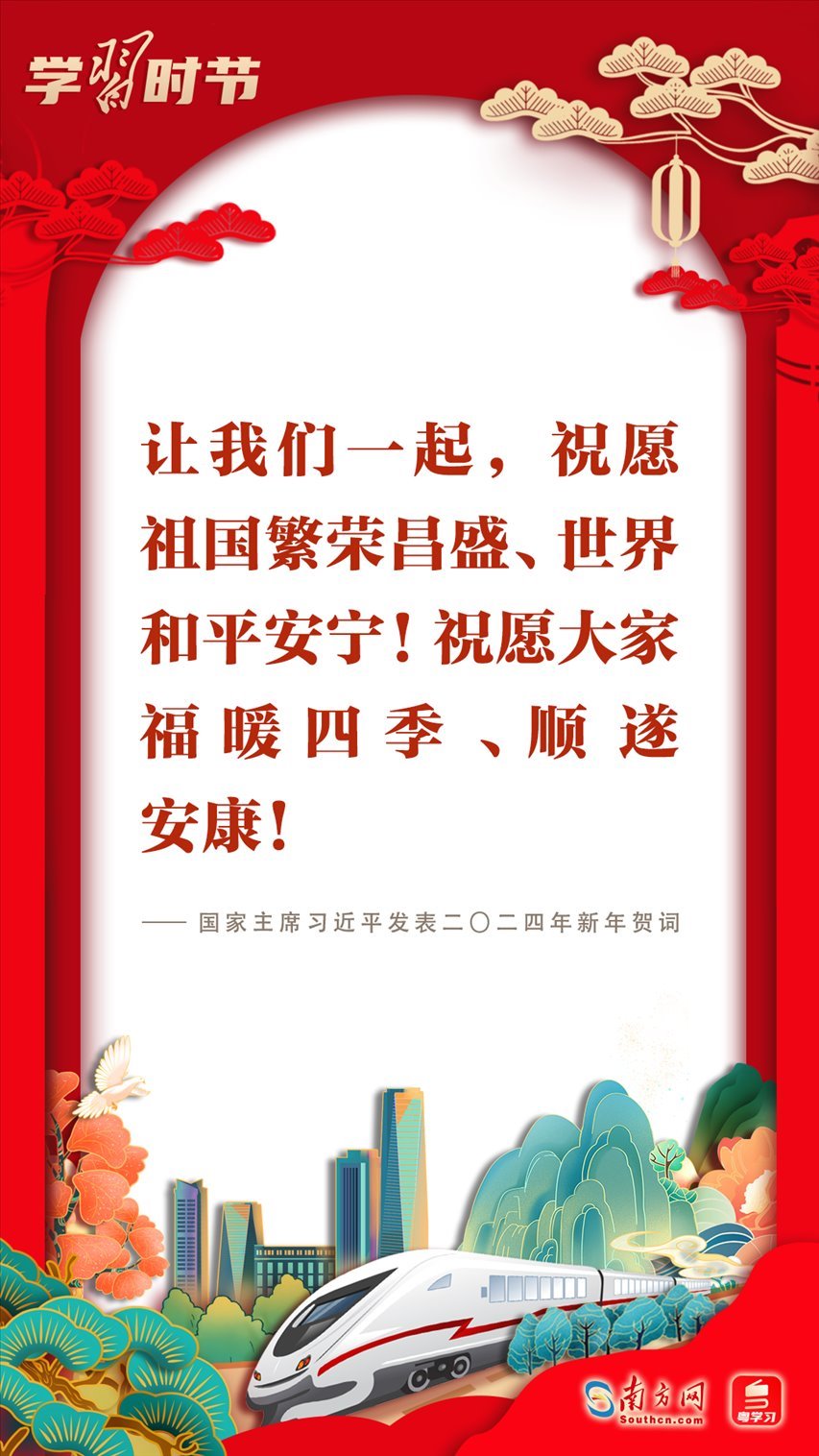 2023年12月31日晚,國(guó)家主席習(xí)近平在北京發(fā)表二〇二四年新年賀詞。賀詞飽含對(duì)廣大人民群眾的深情,彰顯對(duì)中國(guó)發(fā)展的堅(jiān)定信心。回首過(guò)往,展望未來(lái);砥礪前行,征程再起。讓我們一起在習(xí)近平主席的新年賀詞中感受直抵心靈的溫暖、催人奮進(jìn)的力量!