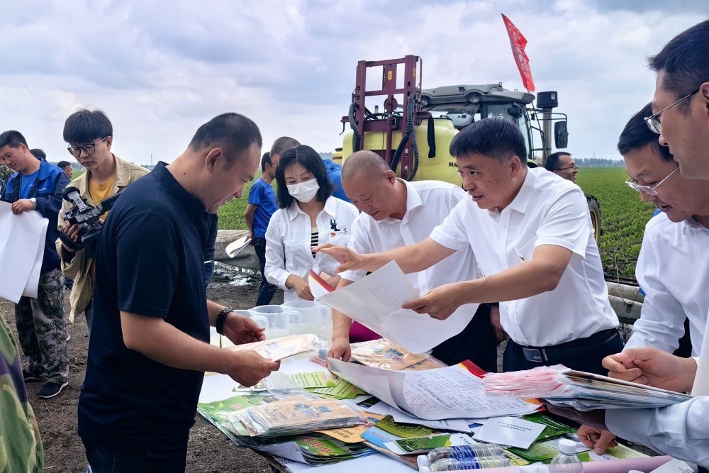 黑龍江省農(nóng)業(yè)農(nóng)村廳種植業(yè)管理處工作人員在哈爾濱市雙城區(qū)地頭,向農(nóng)民發(fā)放科學(xué)用農(nóng)藥資料(2023年6月11日攝)。學(xué)習(xí)貫徹習(xí)近平新時代中國特色社會主義思想主題教育工作會議召開以來,黑龍江省農(nóng)業(yè)農(nóng)村廳種植業(yè)管理處將理論學(xué)習(xí)與實際工作相結(jié)合,深入“田間地頭”調(diào)查研究、深入推進“千萬噸糧食增產(chǎn)計劃”,助力黑龍江省當(dāng)好維護國家糧食安全“壓艙石”,將主題教育成果融入到維護國家糧食安全的具體實踐中。新華社發(fā)