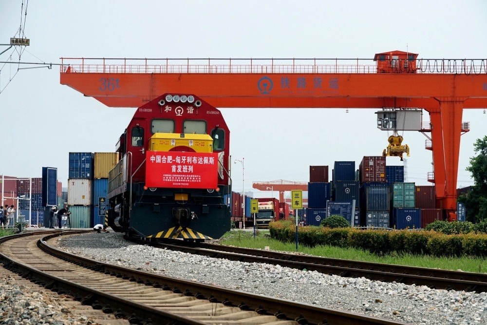 2022年7月29日,合肥至匈牙利布達(dá)佩斯的中歐班列從合肥北站物流基地駛出,標(biāo)志著合肥中歐班列通往匈牙利布達(dá)佩斯的線路正式開通。新華社發(fā)(席靜玉 攝)