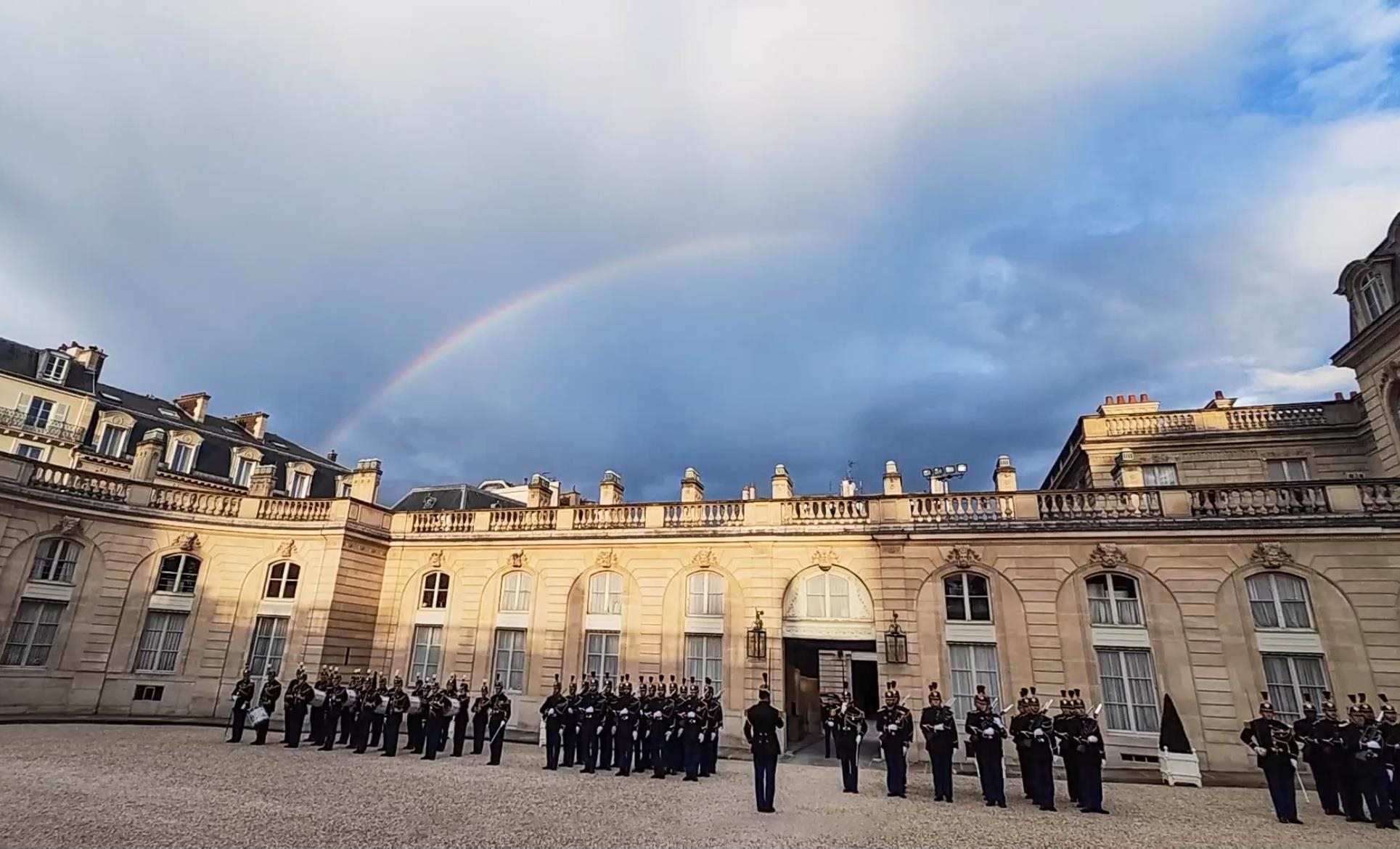 當(dāng)?shù)貢r(shí)間5月6日晚,習(xí)近平主席在巴黎出席馬克龍總統(tǒng)舉行的盛大歡迎宴會(huì)。宴會(huì)前,愛(ài)麗舍宮上空出現(xiàn)彩虹。彩虹連接著東西方。塞納河畔,正寫下中法兩國(guó)“雙向奔赴”的新故事。