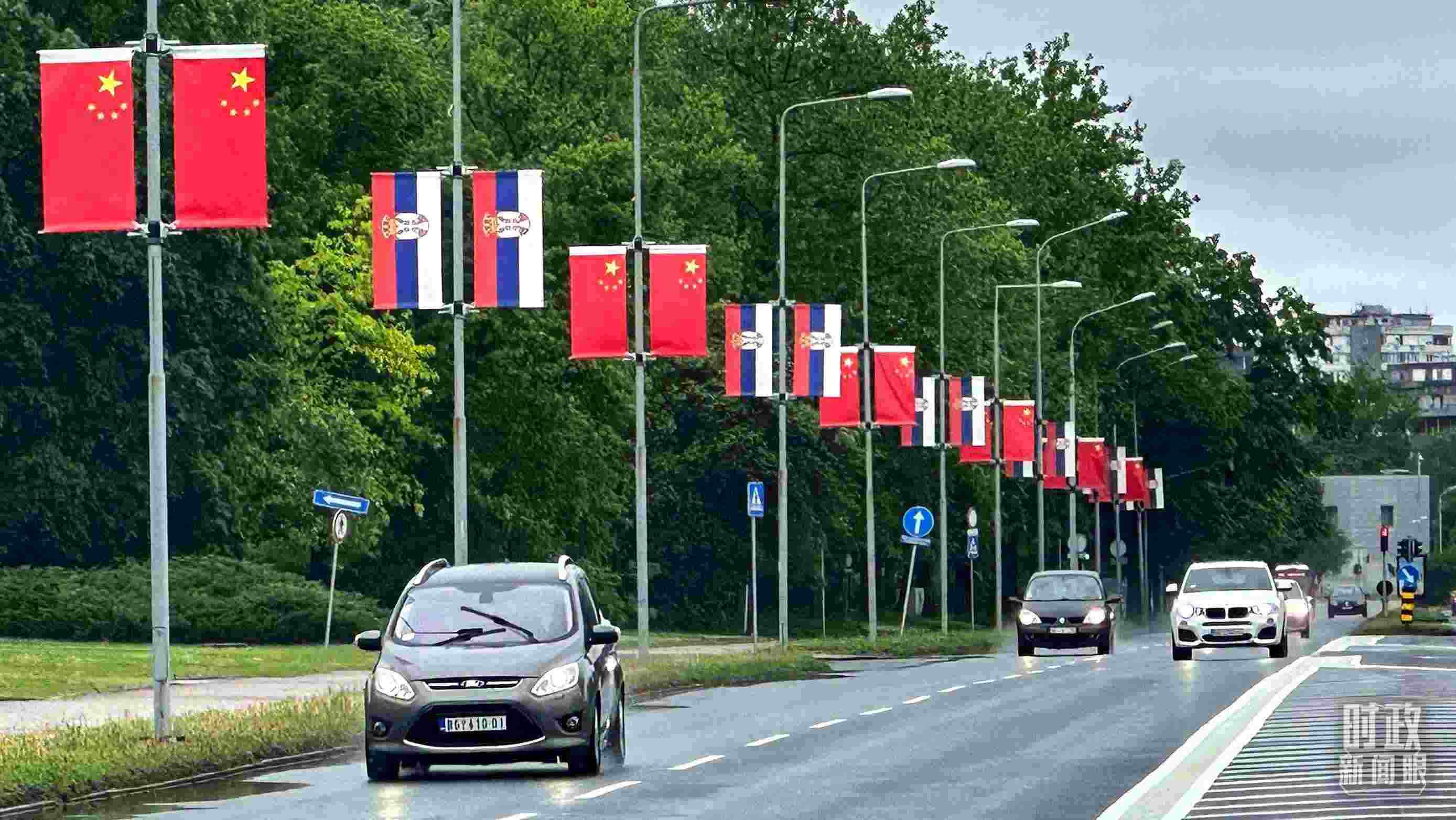 △貝爾格萊德的主要街道掛滿五星紅旗,隨風(fēng)飄揚(yáng)。(總臺央視記者范一鳴拍攝)