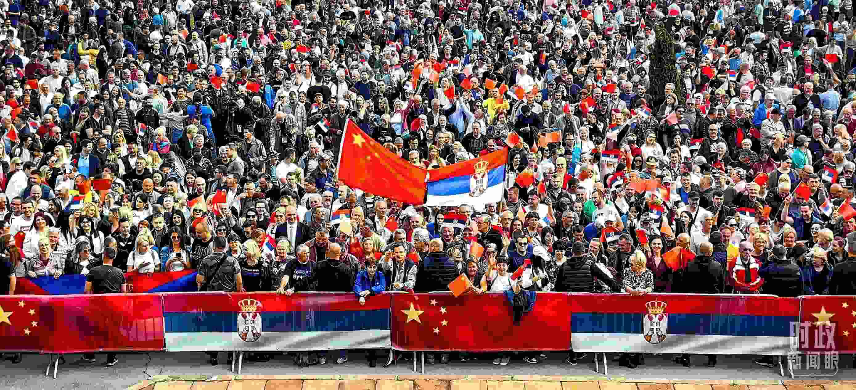 △一萬五千名塞爾維亞民眾齊聚塞爾維亞大廈廣場,熱烈歡迎習主席到訪。(總臺央視記者段德文拍攝)