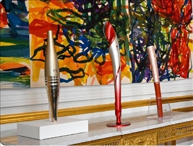 在法國(guó)愛(ài)麗舍宮一層肖像廳,三支奧運(yùn)火炬并排而立,格外引人注目。這是中法兩國(guó)元首夫婦互贈(zèng)禮品之一。