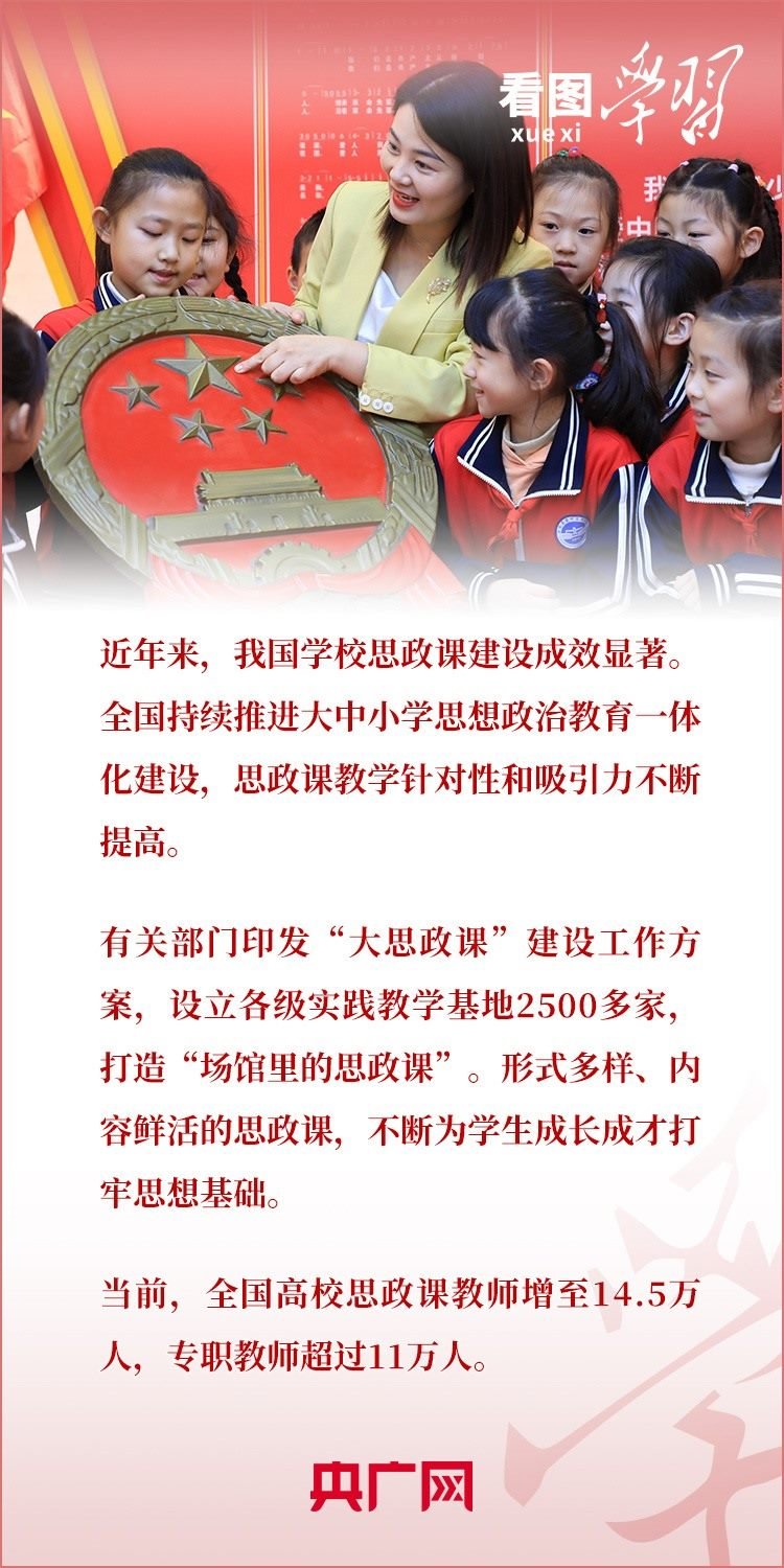 近日,習近平總書記對學校思政課建設作出重要指示。總書記強調(diào),新時代新征程上,思政課建設面臨新形勢新任務,必須有新氣象新作為。各級黨委(黨組)要把思政課建設擺上重要議程,各級各類學校要自覺擔起主體責任,不斷開創(chuàng)新時代思政教育新局面,努力培養(yǎng)更多讓黨放心、愛國奉獻、擔當民族復興重任的時代新人。一起來學習!