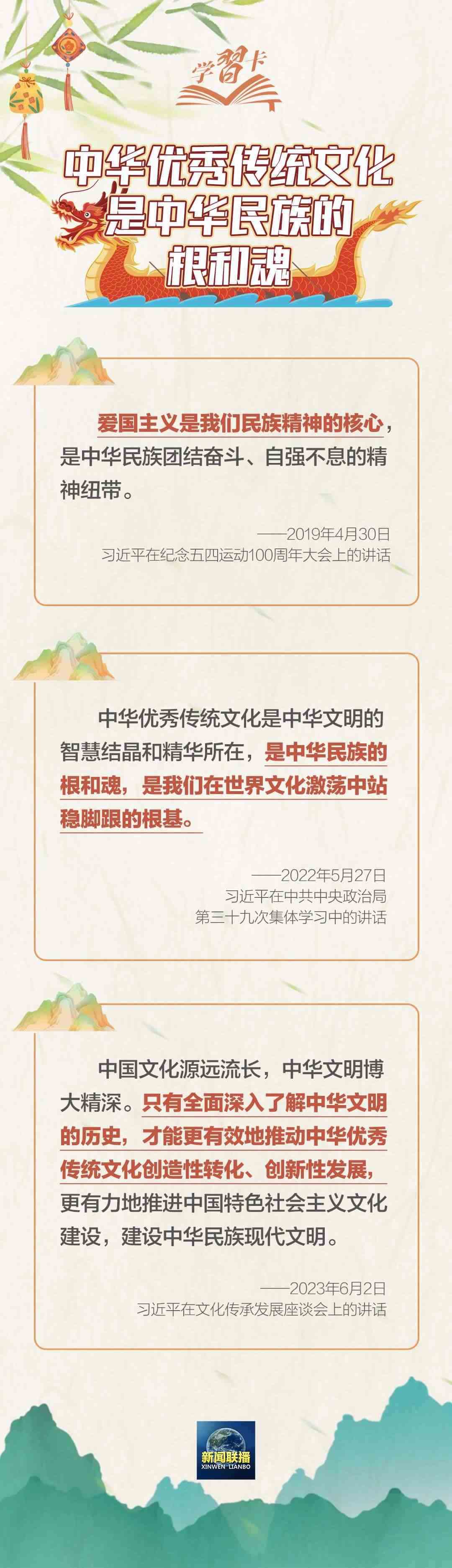 在棹影斡波、鼓聲劈浪中舉行龍舟賽,品嘗軟糯可口的香粽,門(mén)上掛艾草和菖蒲……端午節(jié)生動(dòng)印證了“中華優(yōu)秀傳統(tǒng)文化已經(jīng)成為中華民族的基因”,已成為弘揚(yáng)民族精神、激發(fā)愛(ài)國(guó)情感的重要載體。