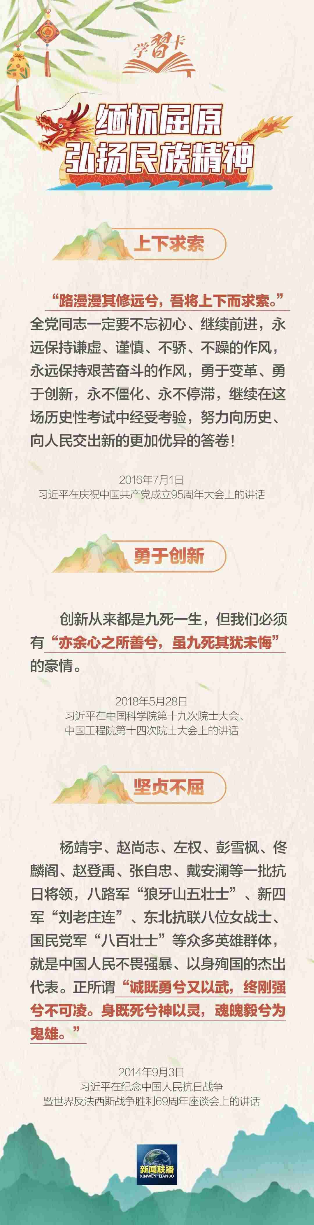 習(xí)近平總書(shū)記曾多次引用屈原的名句寄情言志、闡述思想,就傳統(tǒng)文化的繼承和發(fā)揚(yáng)作出重要論述。一起學(xué)習(xí)↓