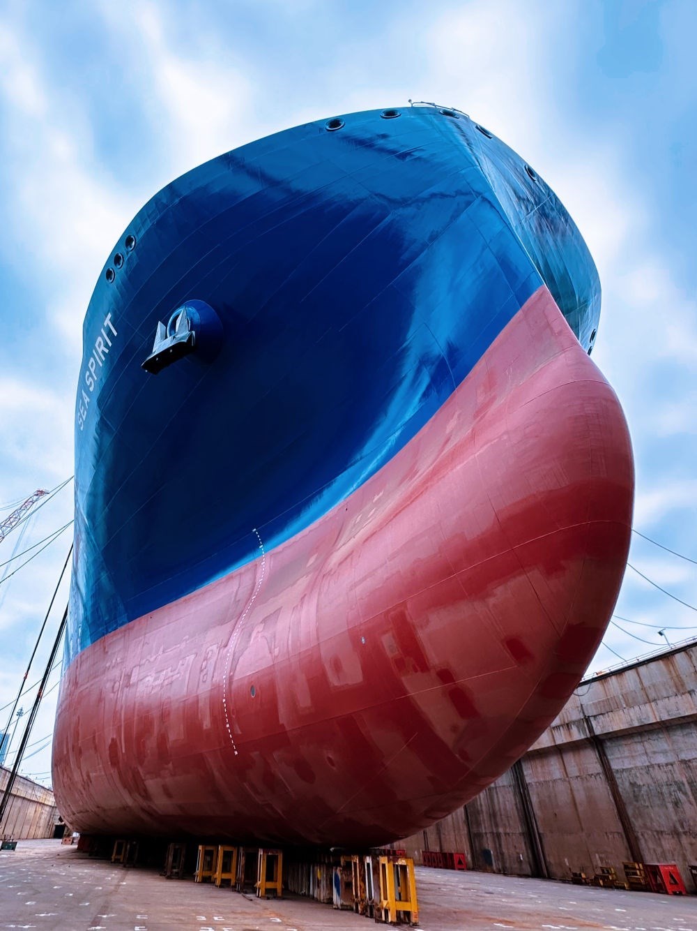 6月的大連,碧海流云。中國船舶集團(tuán)大連船舶重工集團(tuán)有限公司(簡稱“中國船舶大連造船”)一艘正在建造的17.5萬立方米LNG運輸船??吭诖a頭,400多名工人上上下下,正在進(jìn)行貨物圍護(hù)系統(tǒng)的施工。