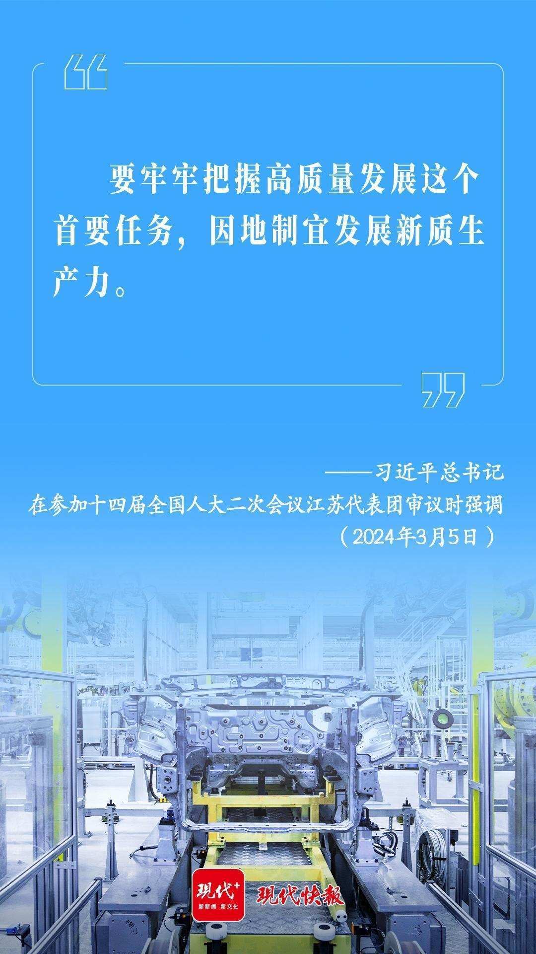 2024年3月5日,習近平總書記在參加十四屆全國人大二次會議江蘇代表團審議時強調(diào):“要牢牢把握高質(zhì)量發(fā)展這個首要任務(wù),因地制宜發(fā)展新質(zhì)生產(chǎn)力。”