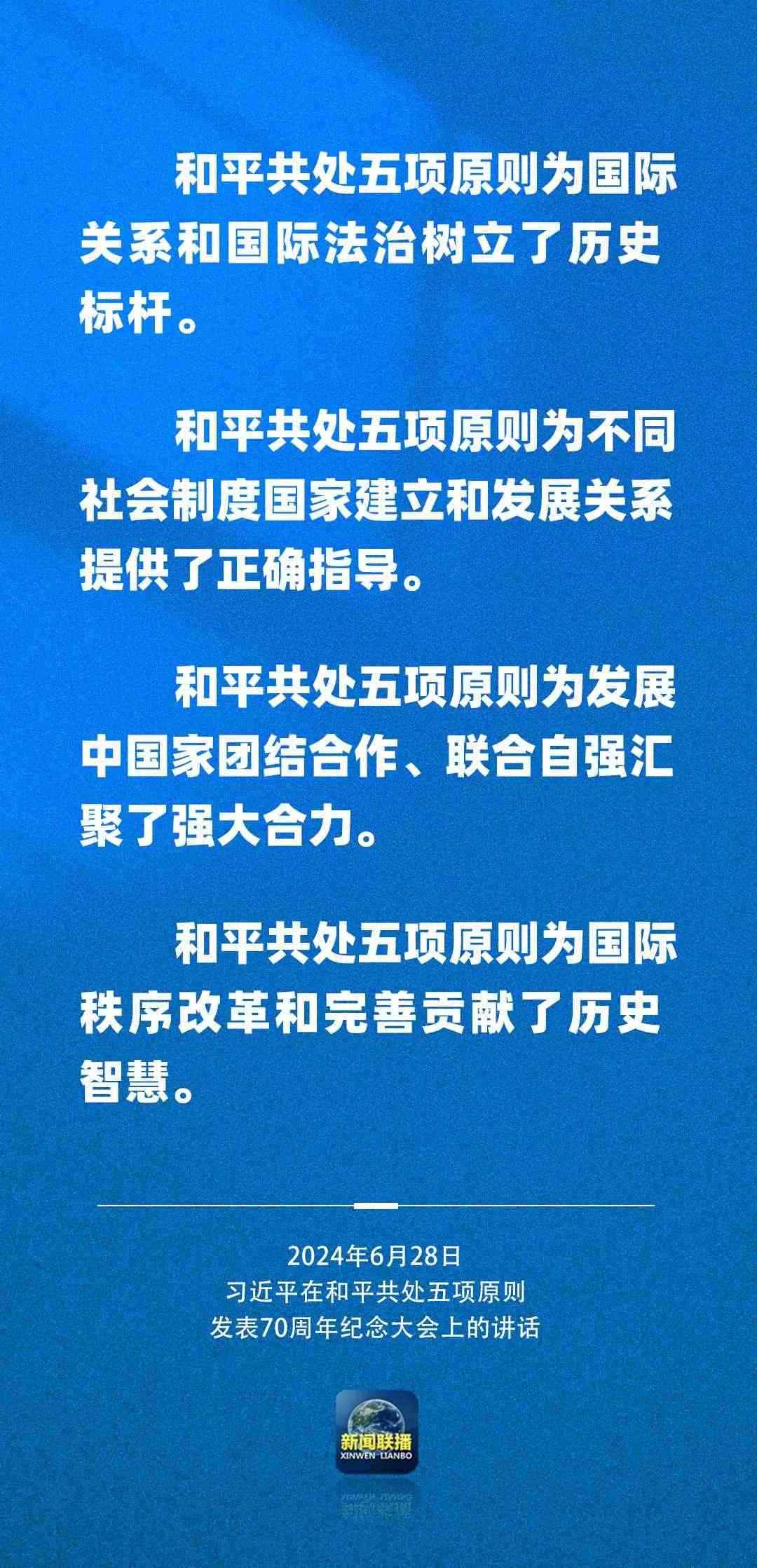6月28日上午,國家主席習(xí)近平在北京人民大會堂出席和平共處五項(xiàng)原則發(fā)表70周年紀(jì)念大會并發(fā)表重要講話。