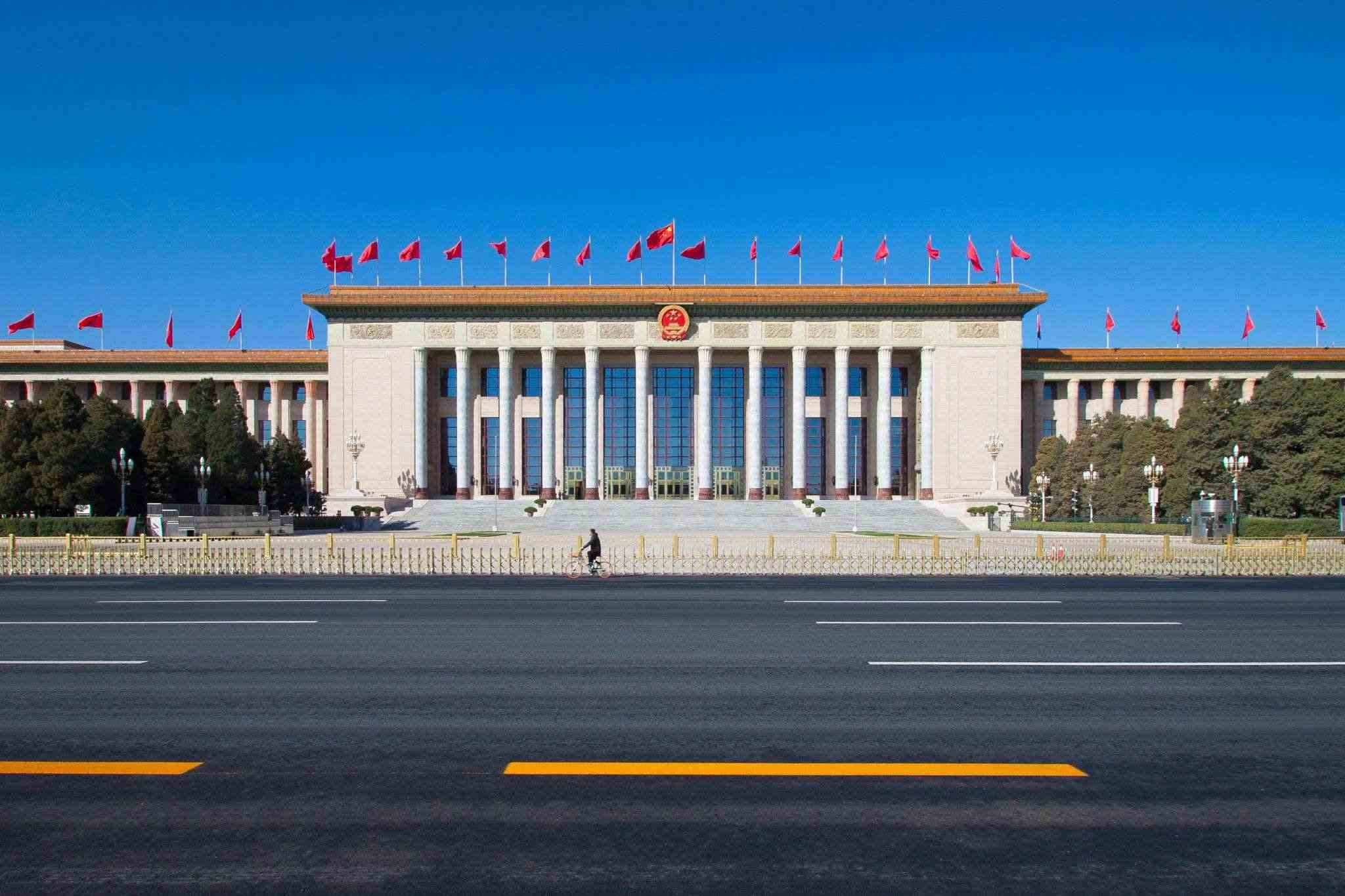 △北京人民大會堂設計中間部分最高,整組建筑平面呈“山”字形。