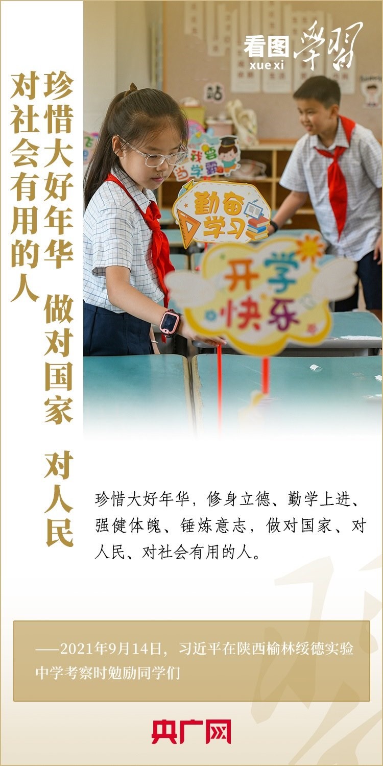 “少年兒童是祖國的未來?!币恢币詠?,習(xí)近平總書記高度重視和關(guān)心青少年的健康成長。每每走到校園和學(xué)生們中間,總書記總會(huì)與他們談學(xué)習(xí)、談理想、談成長,鼓勵(lì)他們努力為自己贏得人生出彩的機(jī)會(huì),做對國家、對人民、對社會(huì)有用的人。又是一年開學(xué)季,讓我們一起重溫總書記對莘莘學(xué)子的殷切期望。一起來學(xué)習(xí)!