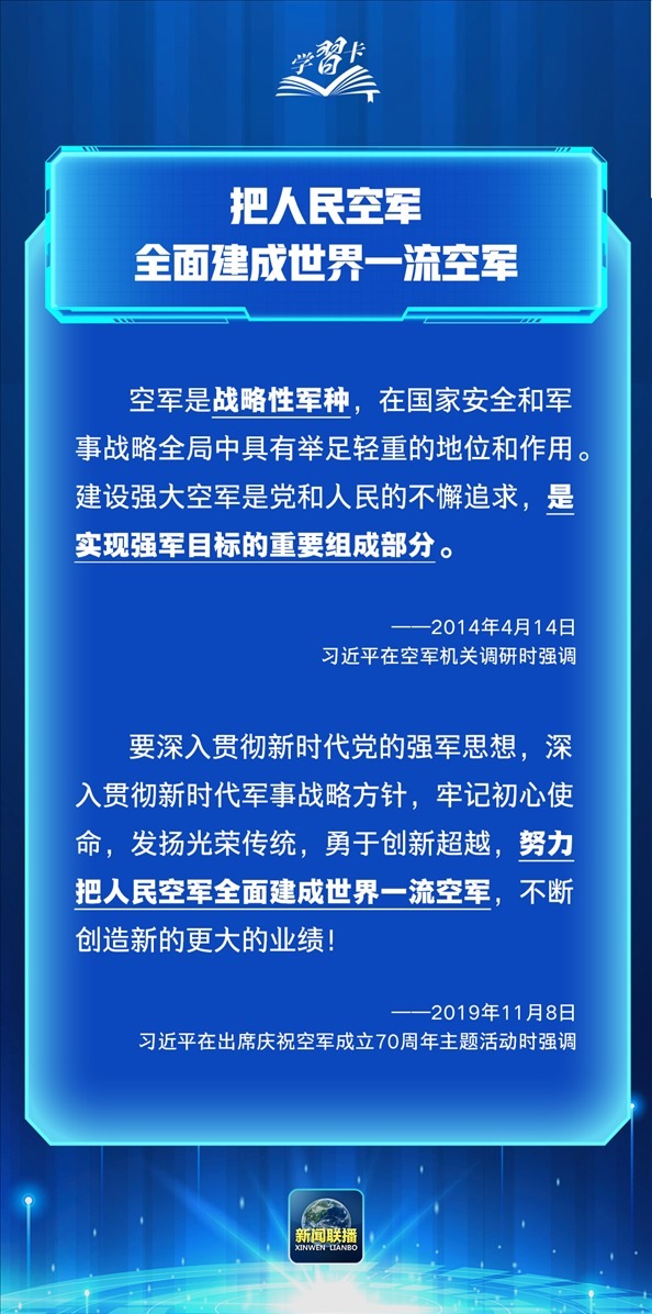 2024年11月11日,是中國(guó)人民解放軍空軍成立75周年紀(jì)念日。在黨的堅(jiān)強(qiáng)領(lǐng)導(dǎo)下,一代代空軍官兵胸懷凌云壯志,搏擊萬(wàn)里長(zhǎng)空,推動(dòng)空軍建設(shè)取得舉世矚目的成就,為維護(hù)國(guó)家主權(quán)、安全、發(fā)展利益建立了不朽功勛。如何把人民空軍全面建成世界一流空軍?一起學(xué)習(xí)↓