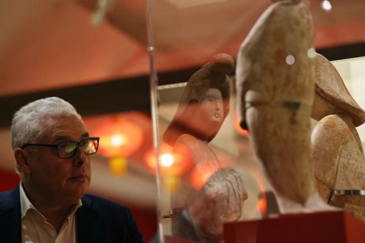 2024年11月18日,在位于法國(guó)巴黎的吉美國(guó)立亞洲藝術(shù)博物館,一名觀(guān)眾參觀(guān)“中國(guó)·唐——一個(gè)多元開(kāi)放的朝代(7至10世紀(jì))”展覽。新華社記者 高靜 攝