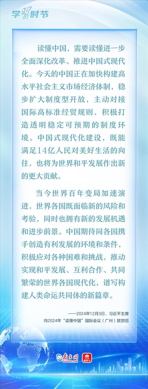 12月3日,國家主席習近平向2024年“讀懂中國”國際會議(廣州)致賀信。