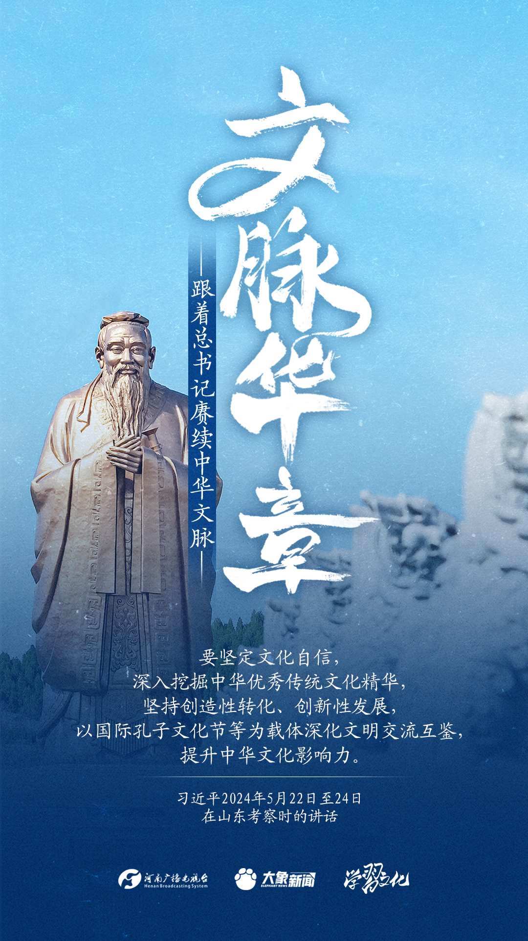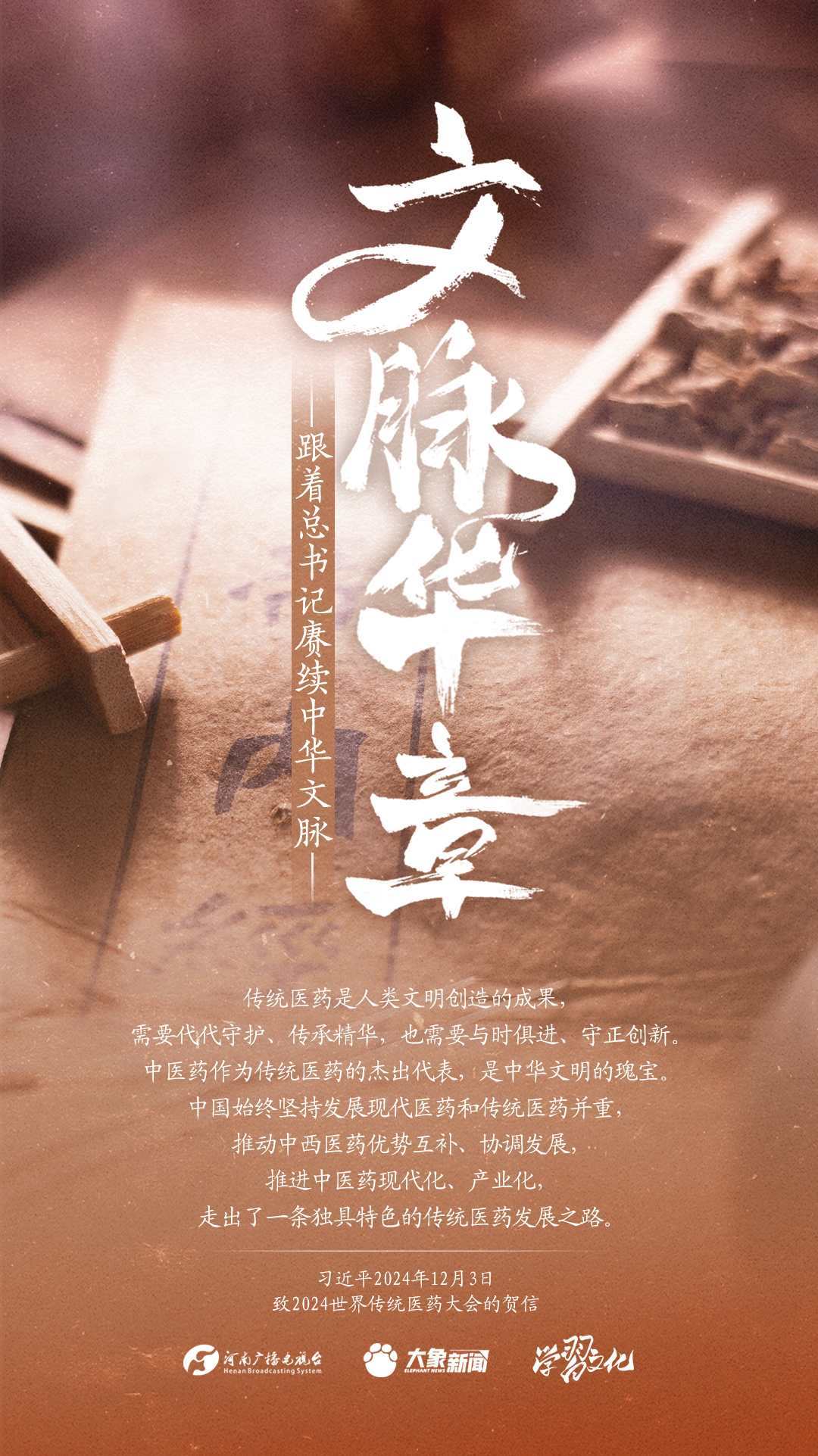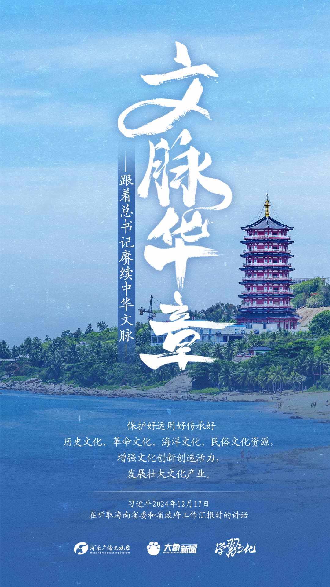 習(xí)近平總書(shū)記高度重視中華優(yōu)秀傳統(tǒng)文化的繼承和弘揚(yáng)。2024年,總書(shū)記一如既往,念茲在茲。在赴地方考察、主持召開(kāi)重要會(huì)議等眾多場(chǎng)合,多次對(duì)傳承發(fā)展中華優(yōu)秀傳統(tǒng)文化作出重要講話重要指示。大象新聞邀您一起,跟著總書(shū)記賡續(xù)中華文脈,推動(dòng)中華優(yōu)秀傳統(tǒng)文化創(chuàng)造性轉(zhuǎn)化和創(chuàng)新性發(fā)展,在新的起點(diǎn)上繼續(xù)推動(dòng)文化繁榮、建設(shè)文化強(qiáng)國(guó)、建設(shè)中華民族現(xiàn)代文明。
