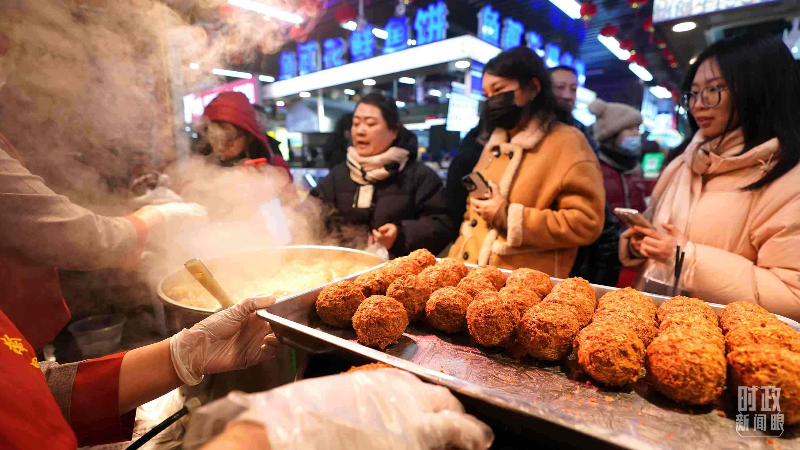 春節(jié)日益臨近,大東副食品商場里,叫賣聲、詢價聲、滋滋冒油聲、嘭嘭剁餡聲……一派熱鬧非凡。在東北的數(shù)九寒天里,當(dāng)沸騰的煙火氣遇到節(jié)日的喜慶氛圍,寒冬臘月里更顯熱氣騰騰。