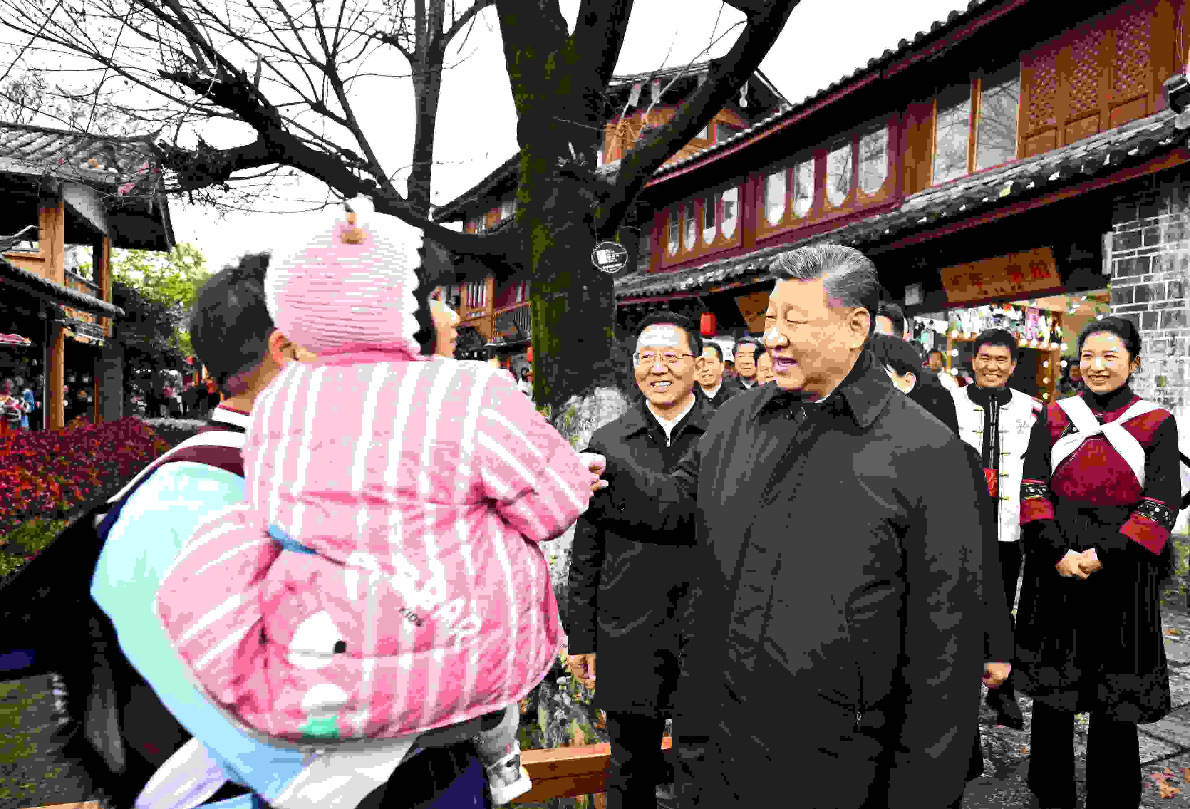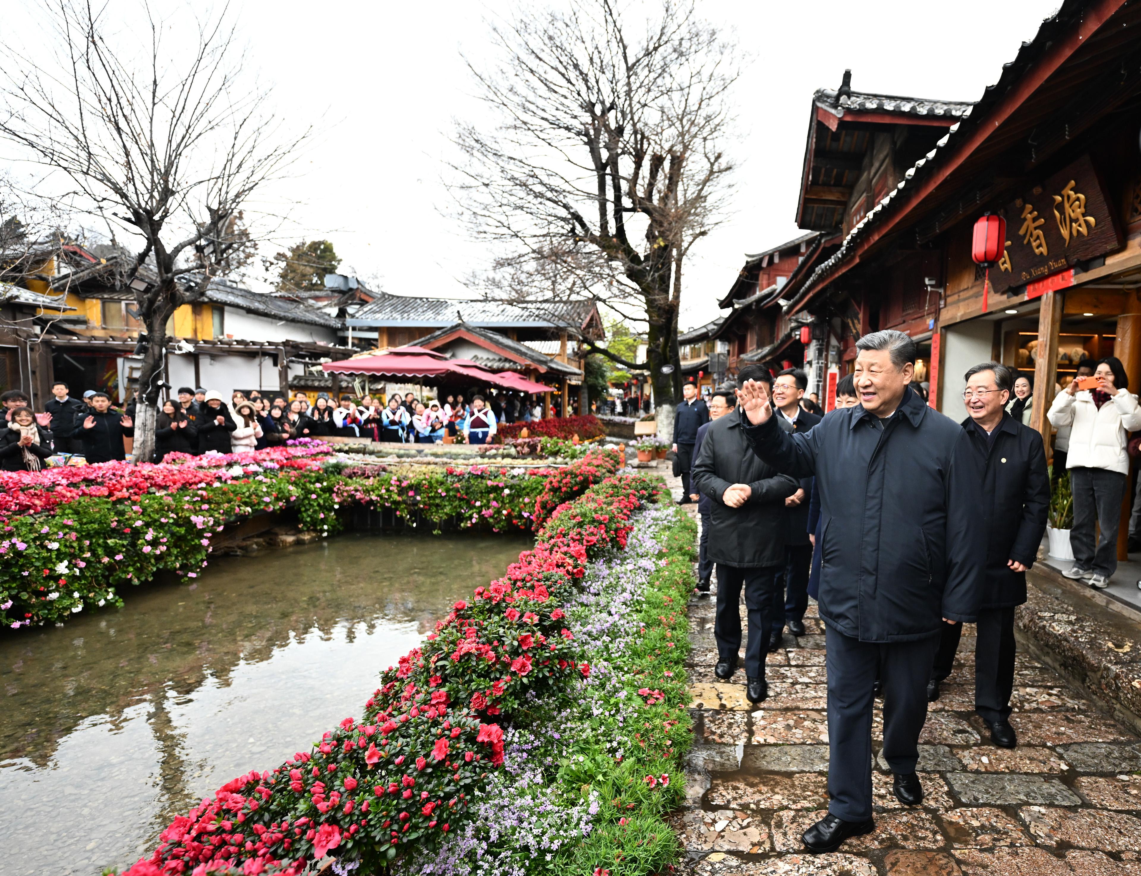 習(xí)近平總書(shū)記19日下午來(lái)到云南麗江古城,沿著石板路邊走邊看。當(dāng)?shù)鼐用窈脱赝居慰褪譄崆榈叵蚩倳?shū)記問(wèn)好,習(xí)近平不時(shí)停下腳步同大家親切交流。習(xí)近平說(shuō),這里的文化、風(fēng)光、民俗都非常吸引人,文旅融合促進(jìn)了經(jīng)濟(jì)發(fā)展。文旅產(chǎn)業(yè)要走一條持續(xù)、健康的發(fā)展之路。希望你們的生活幸福安康,就像納西族的大姓“和”姓一樣,和和美美。