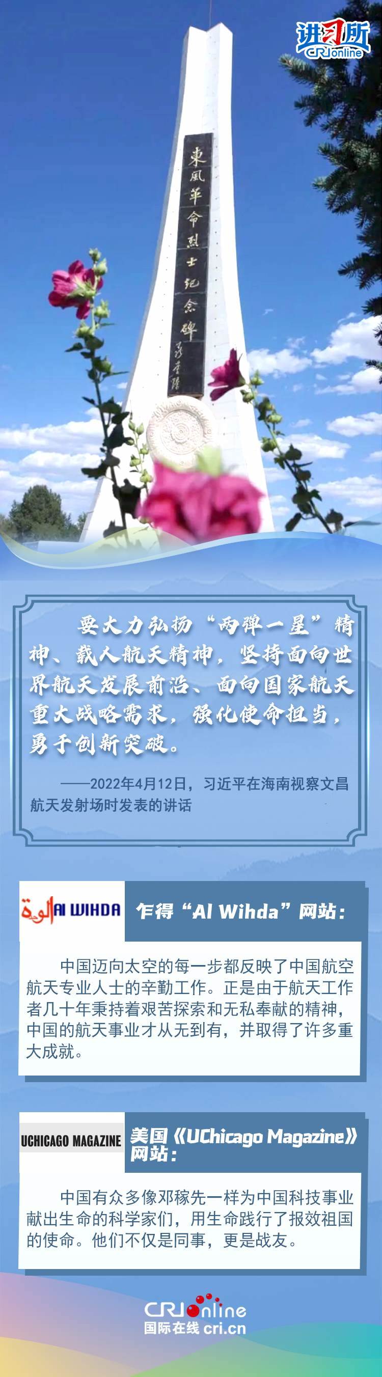 新時代以來,從設(shè)立烈士紀(jì)念日到出臺英雄烈士保護法,再到加強烈士紀(jì)念設(shè)施保護,中國崇尚英雄、學(xué)習(xí)英雄的社會風(fēng)尚贏得國際社會贊譽。在國際人士眼中,中國多年來飛躍式的進步和發(fā)展,離不開人們對先輩意志的繼承與實踐。