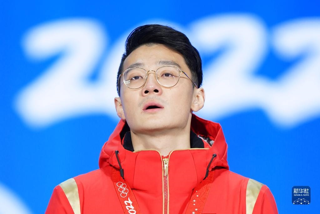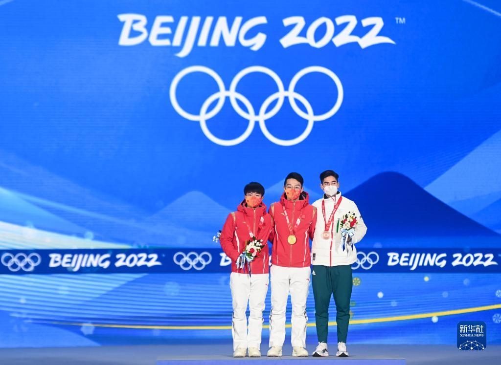 當(dāng)日,北京2022年冬奧會(huì)短道速滑男子1000米獎(jiǎng)牌頒發(fā)儀式在北京賽區(qū)頒獎(jiǎng)廣場(chǎng)舉行。