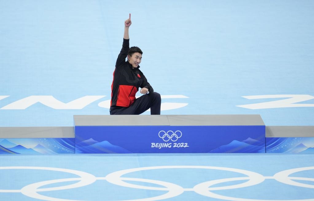 高亭宇比出“第一”的手勢,咧嘴笑了。他高舉五星紅旗環(huán)繞全場,朝觀眾席大喊了一聲,宣泄心中的激情。“我愛你中國,親愛的母親……”音樂響起,亮麗的中國紅在“冰絲帶”飄揚(yáng)。