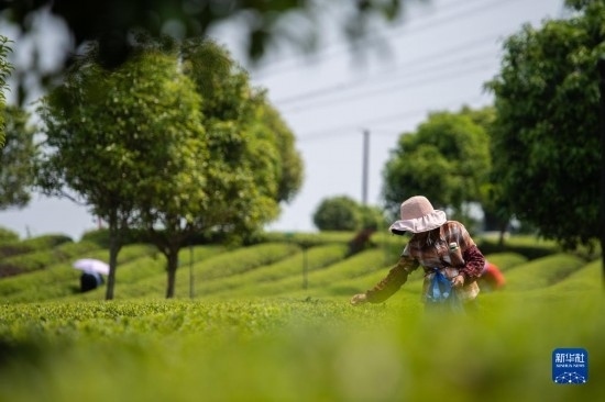 4月11日,在長沙望城烏山貢茶基地,茶農(nóng)在采摘春茶。