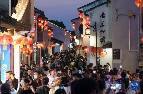 江蘇蘇州:山塘街里游人如織