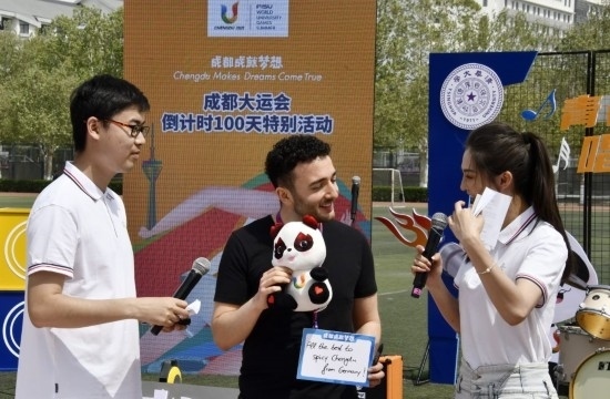 4月19日,成都第31屆世界大學(xué)生夏季運(yùn)動(dòng)會(huì)倒計(jì)時(shí)100天青春歌會(huì)活動(dòng)在清華大學(xué)舉行。新華社記者 李欣 攝
