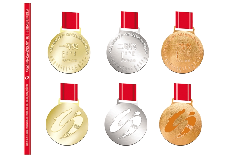 獎牌以本屆運動會會徽“奮進”為主基調(diào)進行設(shè)計,一面刻印會徽“奮進”圖案,一面鐫刻“內(nèi)蒙古自治區(qū)第十一屆少數(shù)民族傳統(tǒng)體育運動會”“2025?赤峰”和獲獎名次,既有本屆運動會“l(fā)ogo”形象,又明確運動會屆次、舉辦時間及地點,也寓意踐行“更快、更高、更強、更團結(jié)”的體育運動精神。(記者 肖璐)