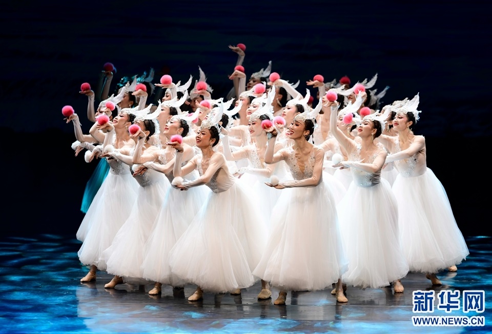1月12日,演員在2022年內(nèi)蒙古新年舞蹈晚會中表演群舞《春之韻》。新華網(wǎng)發(fā)(王正攝)