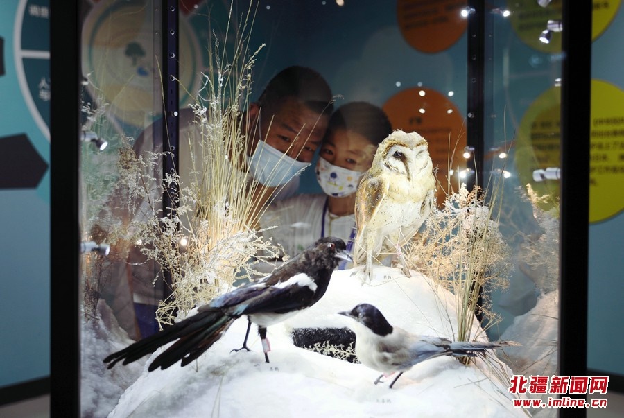 8月13日,參觀者在《振翅北疆》內(nèi)蒙古鳥類特展觀展