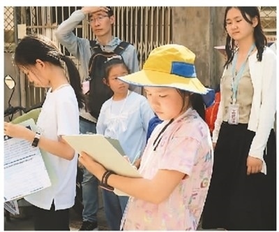 在北京,參與以“歷史文化街區(qū)保護更新與利用”為主題的青少年城市探索班的學(xué)生在做記錄。張仕瀟攝