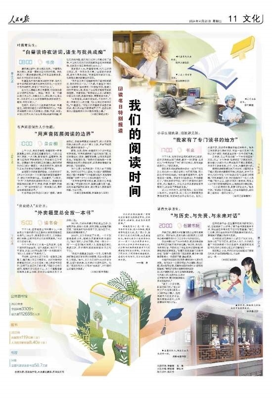閱讀是什么?是一頁一卷,傳承千年文脈;是出行忙碌,隨身攜帶的星辰大海;是廣袤山鄉(xiāng),指引孩子們成長的燈塔;也是靜謐時光,陪伴無數(shù)個日夜的詩和遠方……第二十九個世界讀書日,我們關(guān)注多種多樣的閱讀時間,這些鮮活的場景展現(xiàn)著當下人們閱讀生活的方方面面。讓我們從不同行業(yè)、不同年齡的讀者視角,感受文明的印記,見證時代進步的力量。