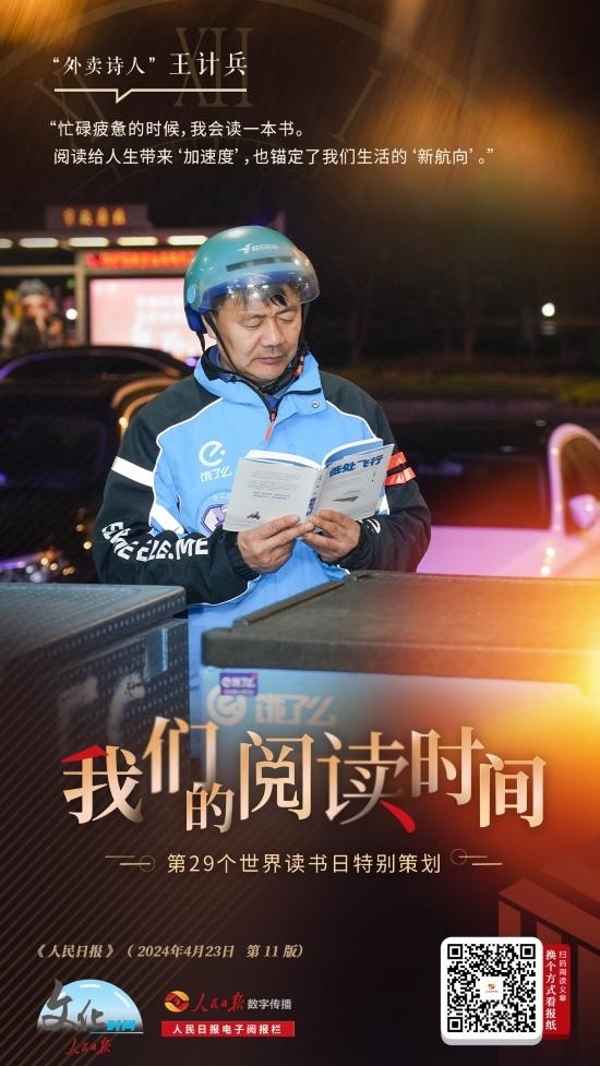 “我的外賣箱里總會放一本書,在等外賣的間隙或者訂單空閑的時候看,現(xiàn)在主要在手機上閱讀?!比缃?,王計兵已創(chuàng)作5000多首詩歌,出版3本詩集,還在進行非虛構(gòu)寫作。他說:“閱讀給我的人生帶來‘加速度’,為忙碌的生活錨定方向感。”