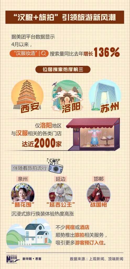 美團(tuán)平臺(tái)數(shù)據(jù)顯示,4月以來,“漢服妝造”搜索量同比增長(zhǎng)136%。西安、洛陽等街頭,隨處可見身著漢服的年輕人在博物館、遺址公園等景區(qū)打卡拍照,摩肩接踵間皆是“貴妃”,文博景區(qū)附近不少商鋪以漢服妝造店為主。不少民宿或酒店,順勢(shì)推出旅拍服務(wù),吸引更多年輕人預(yù)定入住。