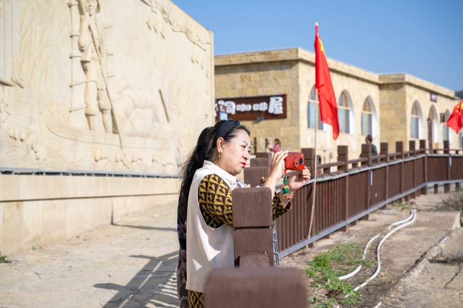 講解員賈吳珍介紹,老牛灣黃河大峽谷旅游區(qū)內(nèi)文物古跡眾多,自然人文景觀皆美,歷史文化底蘊(yùn)深厚,正在積極努力創(chuàng)建國(guó)家5A級(jí)旅游景區(qū),讓世界各地游客充分領(lǐng)略老牛灣黃河大峽谷秀美風(fēng)光。