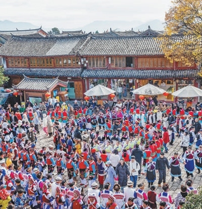 麗江古城涵蓋了作為茶馬古道重鎮(zhèn)的大研古城、從農(nóng)耕文明向商業(yè)文明過(guò)渡的“活標(biāo)本”束河古鎮(zhèn)、有著原生態(tài)納西村落的白沙古鎮(zhèn),融匯了漢族、白族、彝族、藏族、納西族等多民族文化特色。作為一座沒(méi)有城墻的古城,麗江古城以包容與開(kāi)放的姿態(tài),歷經(jīng)文化的交融與碰撞,源源不斷地孕育出充滿魅力的文化新形態(tài)。