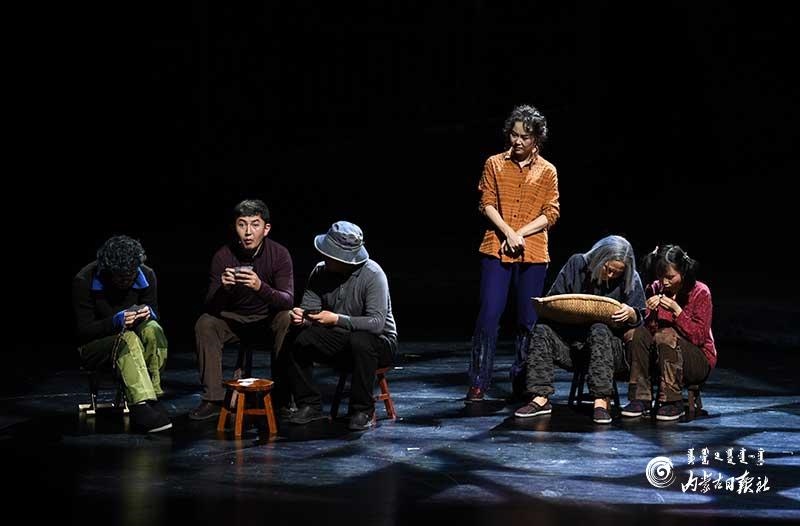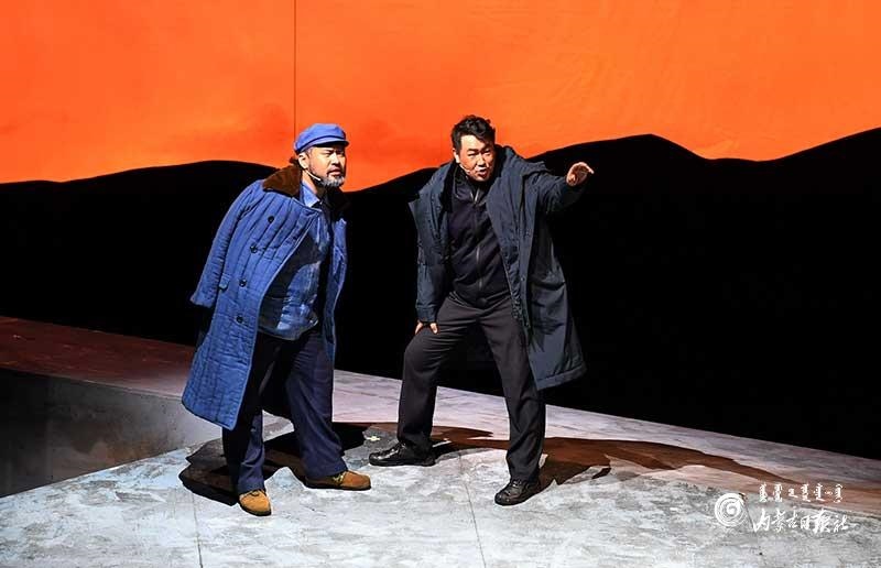 參演《紅手印》的都是來自草原的蒙古族演員,不僅要完成漢語的臺詞,還要熟練自然地講出大量內(nèi)蒙古西部方言對白。“對于話劇演員來說,臺詞功底太重要了。為了練好方言,我們好多演員早起練功的時候嘴里都念念有詞地說著西部方言?!毖輪T烏仁朝魯門說。他扮演的新扎木村主任令人印象深刻,一個一心想帶百姓致富卻屢遭失敗的老黨員形象。“之前表演歷史題材的話劇大多是從影像和資料了解人物,這部戲的題材貼近觀眾們的現(xiàn)實生活,必須接地氣才能得到認(rèn)可。我通過寫人物小傳的方式,深挖村主任的人物個性和從失望到燃起希望的內(nèi)心世界,讓觀眾能夠認(rèn)可這個形象?!睘跞食旈T說。