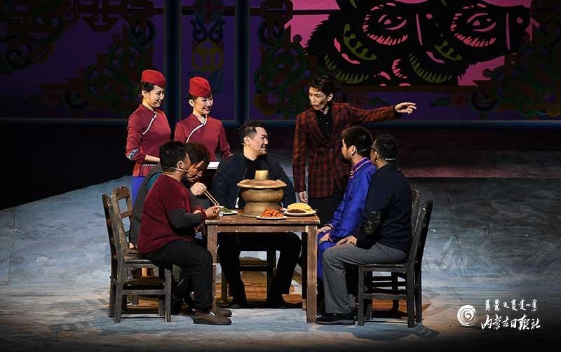 《紅手印》自2018年底首演后,不僅在城市劇院公演,還在全區(qū)各個盟市的旗縣進(jìn)行巡演,共計演出60場。一次次表演,一遍遍打磨,造就了這部舞臺精品?!爸餍勺髌芬脒_(dá)到潛移默化的教化作用,不僅要調(diào)動起各種藝術(shù)手段,憑借作品所產(chǎn)生的藝術(shù)效果和感染力使廣大群眾喜聞樂見,還要通過接地氣的創(chuàng)編和演繹,讓劇中的思想深入人心?!睘趿Ω駹柮晒艅F(tuán)團(tuán)長烏蘭牧騎勒說。