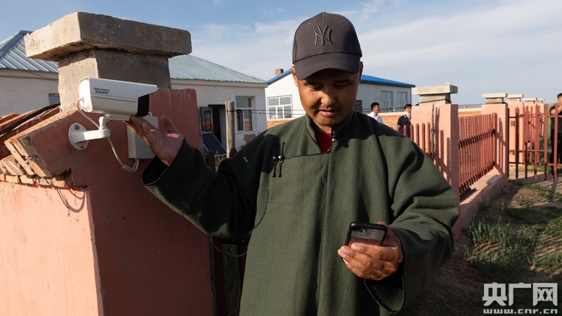 現(xiàn)在很多牧民家門口還多了360度高清攝像頭,蘇尼爾家有3000多畝草場,無論他在哪,點開手機里一款云視頻app,就可以查看草場的每一個角落。