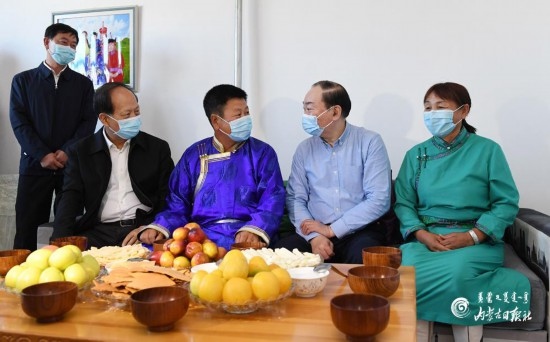 8月29日,中共中央政治局委員、中宣部部長黃坤明在內(nèi)蒙古自治區(qū)黨委書記、人大常委會主任石泰峰陪同下,深入興安盟科右中旗巴彥茫哈蘇木哈圖布其嘎查,走進牧戶家中了解生產(chǎn)生活和脫貧情況。內(nèi)蒙古日報記者袁永紅攝