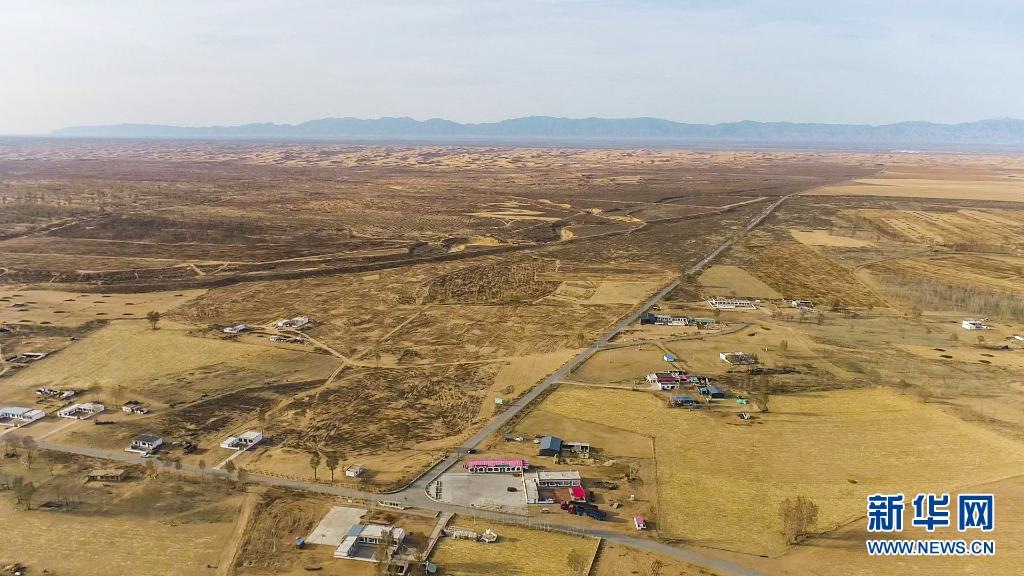 這是位于庫(kù)布其沙漠邊緣的內(nèi)蒙古達(dá)拉特旗官井村(4月3日攝,無(wú)人機(jī)照片)。新華社記者 張晟 攝