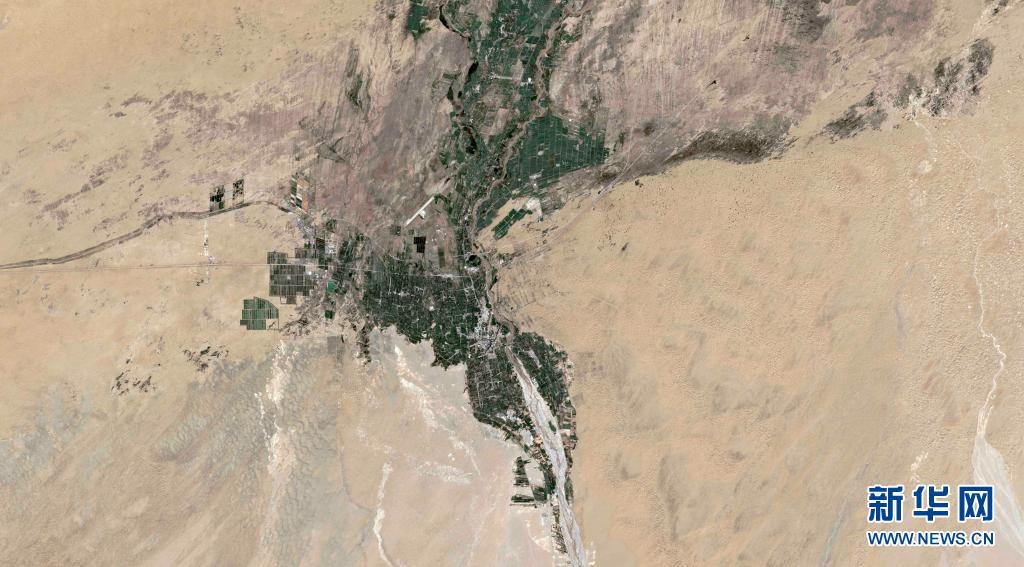 地圖再切換到中國(guó)最大沙漠——塔克拉瑪干沙漠東南緣的新疆且末縣,這個(gè)人口不足十萬(wàn)的小城是全國(guó)面積第二大縣,但是全縣三分之二的面積為沙化土地。車(chē)爾臣河?xùn)|岸的流動(dòng)沙漠與縣城僅一河之隔,距縣城中心不足兩公里。