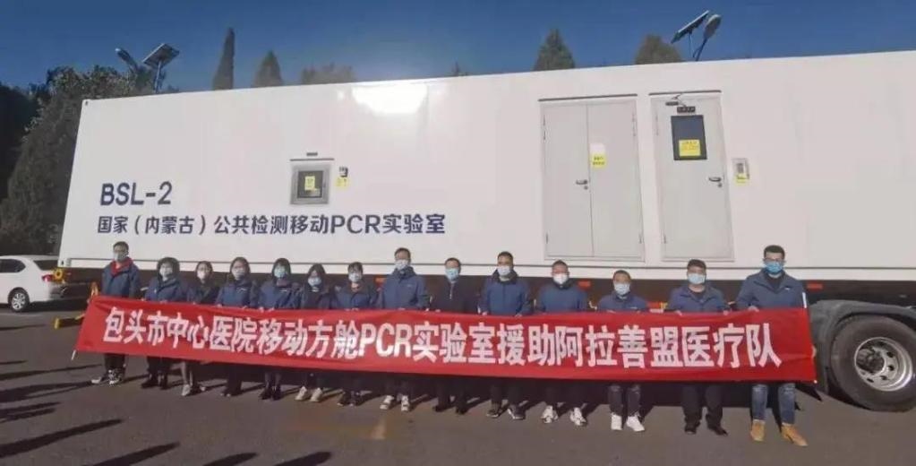 21日,包頭市移動(dòng)方艙P(yáng)CR實(shí)驗(yàn)室醫(yī)療隊(duì)出發(fā)馳援阿拉善盟。(受訪單位供圖)